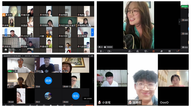 电信学院新生们进行了丰富多彩的才艺展示,古筝演奏、吉他弹唱、舞蹈表演在直播间里轮番上演,既舒缓了新生居家学习的压力和紧张,又增加了师生之间的情感沟通,让节日氛围更加浓厚。