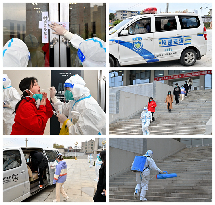 演练以上午学校按要求开展全员核酸检测,下午16:00,学校疫情防控工作领导小组办公室接到商州区防肺办反馈,有核酸检测混管异常情况为背景。从收到“异常反馈”开始,各工作组迅速行动,对混管“异常”学生医疗处置流程与校内防控工作处理流程同步高效运转,完成了应急响应、区域封控、核酸检测、“异常患者”转运、密切接触者隔离、环境全面消杀、信息上报等重要应急处置环节。演练现场紧张有序,各工作组按既定预案,分工明确,配合到位,有条不紊,准确高效地完成了应急处置演练任务,达到了熟悉流程、发现问题、完善提高的目的。