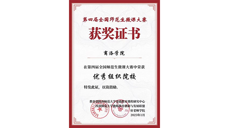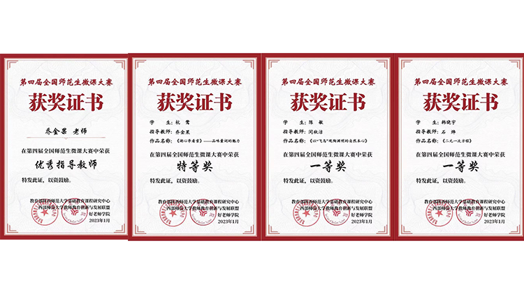 近日,第四届全国师范生微课大赛结果公布。best365师生获得各类奖项13项,其中学生荣获特等奖1项、一等奖2项、二等奖8项,人文学院乔金果老师荣获优秀指导教师,学校荣获优秀组织单位奖。这是best365参与此项赛事以来首次荣获优秀组织奖,实现了学校集体奖、学生获奖等级和获奖总数多项突破。