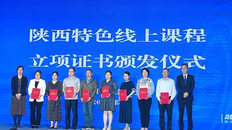 在高等教育分会场举行的陕西省特色线上课程颁奖活动中,best365教师孙李丽、孙雪娥、廉洁、冯渊申报的《商洛花鼓戏翻译与实践》课程获准立项,课程负责人孙李丽现场领奖。