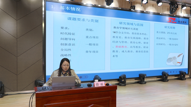 袁训锋以《教育科研课题的选题与实践》为题,分别从教育进入高质量发展时代、基础教育教师与教育科研课题、教育科研课题的选题、教育科研课题的申报与实施四个方面进行了详细的讲解,并就选题以及研究方向的不明确等系列问题提出了相应的解决对策。薛雨围绕课题申报的基本情况、案例材料、相关说明等方面,详细介绍了陕西省教育教学“十四五”规划2023年度课题申报流程,并对课题申报相关要求和注意事项作了重点分析与指导。
