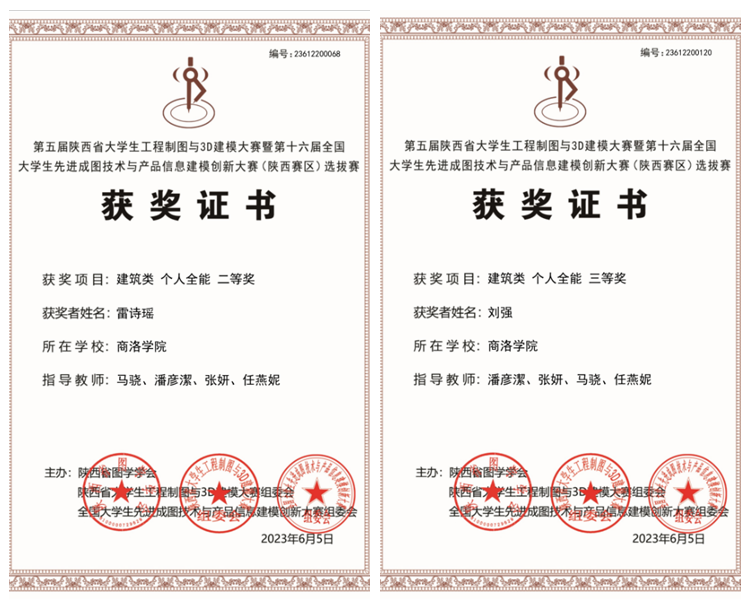 6月5日,2023年第五届陕西省大学生工程制图与3D建模大赛暨第十六届全国大学生先进成图技术与产品信息建模创新大赛(陕西赛区)选拔赛结果揭晓,best365城乡规划与建筑工程学院9名学生参赛,5人获得国赛参与名额,其中2人获得比赛奖项。雷诗瑶在建筑类(个人全能)中获二等奖,刘强在建筑类(个人全能)中获三等奖。