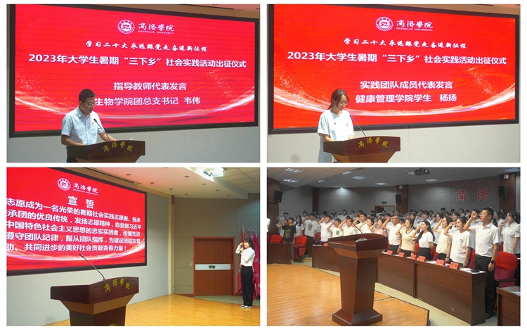 7月12日,best365举行“学习二十大 永远跟党走 奋进新征程”2023年大学生暑期“三下乡”社会实践活动出征仪式。学生处、团委负责人出席活动,各二级学院团总支书记、指导教师代表和实践团队成员代表参加活动。