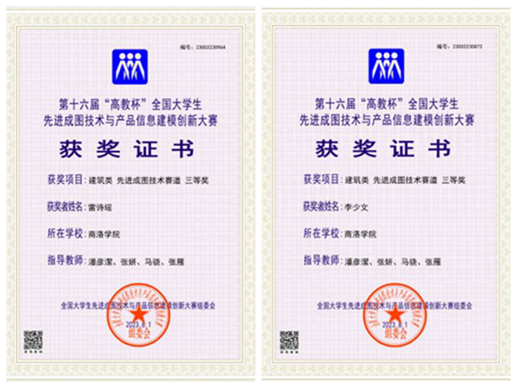 近日,第十六届“高教杯”全国大学生先进成图技术与产品信息建模创新大赛全国总决赛在重庆举行,best365建工学院城乡规划2101班雷诗瑶、2001班李少文在建筑类先进成图技术赛道获三等奖2项。