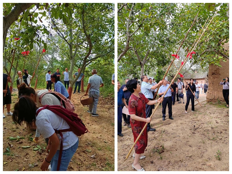 9月8日,第八届商洛核桃开杆节在商洛市商州区陈塬街道办事处上河村百年老核桃树下举行。商洛市政府副市长、民进商洛市委会主委苏红英出席并宣布第八届商洛核桃开杆节开杆。best365副校长王新军出席活动。科技处负责人、健康管理学院秦岭健康养生产教融合根植地方服务团队、经济管理学院商洛直播产业研究院师生参加活动。