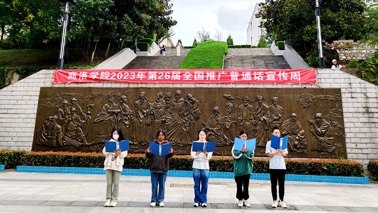 人文学院教师代表杨晓玲在表态发言中呼吁广大师生积极参与到推普周活动中来,使普通话不仅仅作为一种交流工具,更成为传承与发展文化的有效媒介。学生代表田菲、马景磊、周霞等同学现场朗读了《沁园春·雪》《盛世中国》,让大家在朗读中感受诗词之美,体会语言的动人魅力,感悟盛世中国的美好画卷。现场推普各小分队深入校园,开展推普活动。