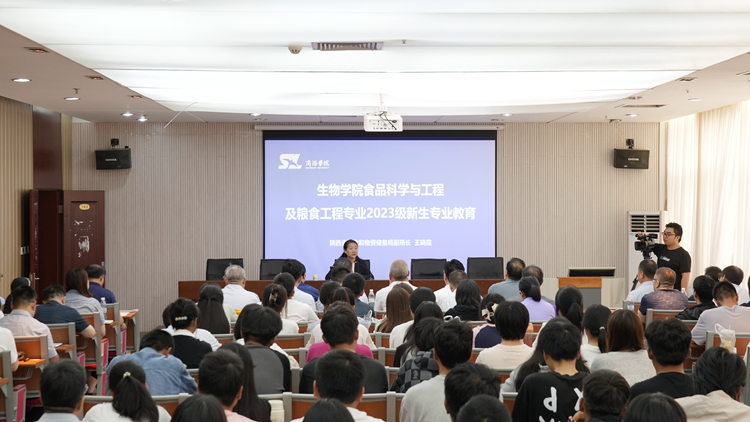 9月18日,陕西省粮食和物资储备局副局长王晓霞来校举办专题报告会,为生物学院粮食工程专业2023级新生讲授“开学第一课”。王晓霞指出,大力实施粮食工程专业建设,不断完善规模宏大的生产、储运结构框架,打造合理的粮食和物资储备人才队伍是当下的大势所趋。希望同学们坚决扛稳国家粮食安全重任,在新时代保障国家粮食安全新征程上锤炼青春,彰显青年责任。