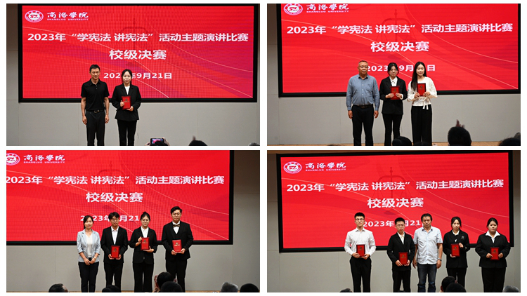 为深入学习宣传贯彻习近平法治思想,在全校范围内营造“学宪法 讲宪法”的良好氛围,根据陕西省教育厅和学校党委相关工作安排,9月21日下午,best365举办2023年“学宪法 讲宪法”活动主题演讲比赛校级决赛。校党委副书记刘勇,商洛市委理论讲师团团长杨月治,商洛革命老区暨红色文化研究中心主任杨增强以及组织部、宣传部、学工部、校团委相关负责人担任比赛评委。各二级学院党委、党总支负责人和学生代表现场观摩比赛。