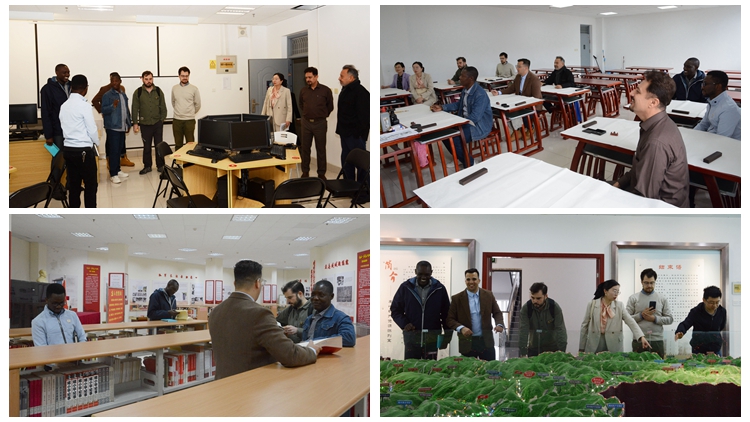在工作人员的引导下,外籍教师先后参观了经管学院教室、综合实验室、特色计算机实验室,电信学院实验室、人工智能机器人实训室,艺术学院智慧书法实验室、艺术展厅,商洛文化暨贾平凹研究中心,商洛红色文化资料馆,陕西省尾矿重点实验室,学校发展成就展厅及秦岭植物标本陈列室。在智慧书法教室,艺术学院教师樊洪涛为外籍教师介绍了中国书画的传承与发展历史,并指导外籍教师进行了书法体验,“沉浸式”感受了中国传统文化魅力。