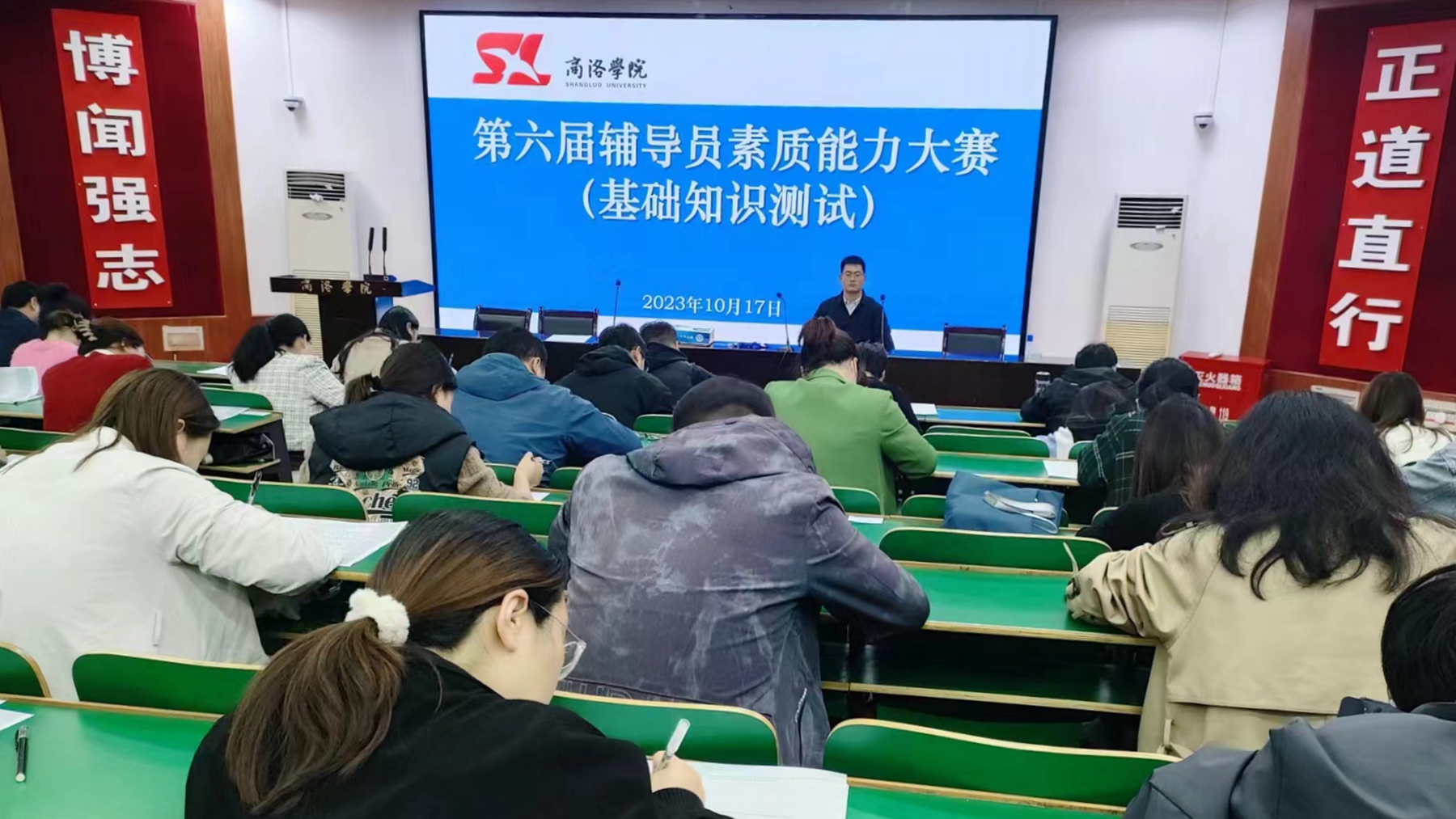best365全体专职辅导员参加了基础知识测试。各学院根据本学院辅导员综合素质、日常工作能力与实际表现,择优推荐10名辅导员参加了校级决赛。