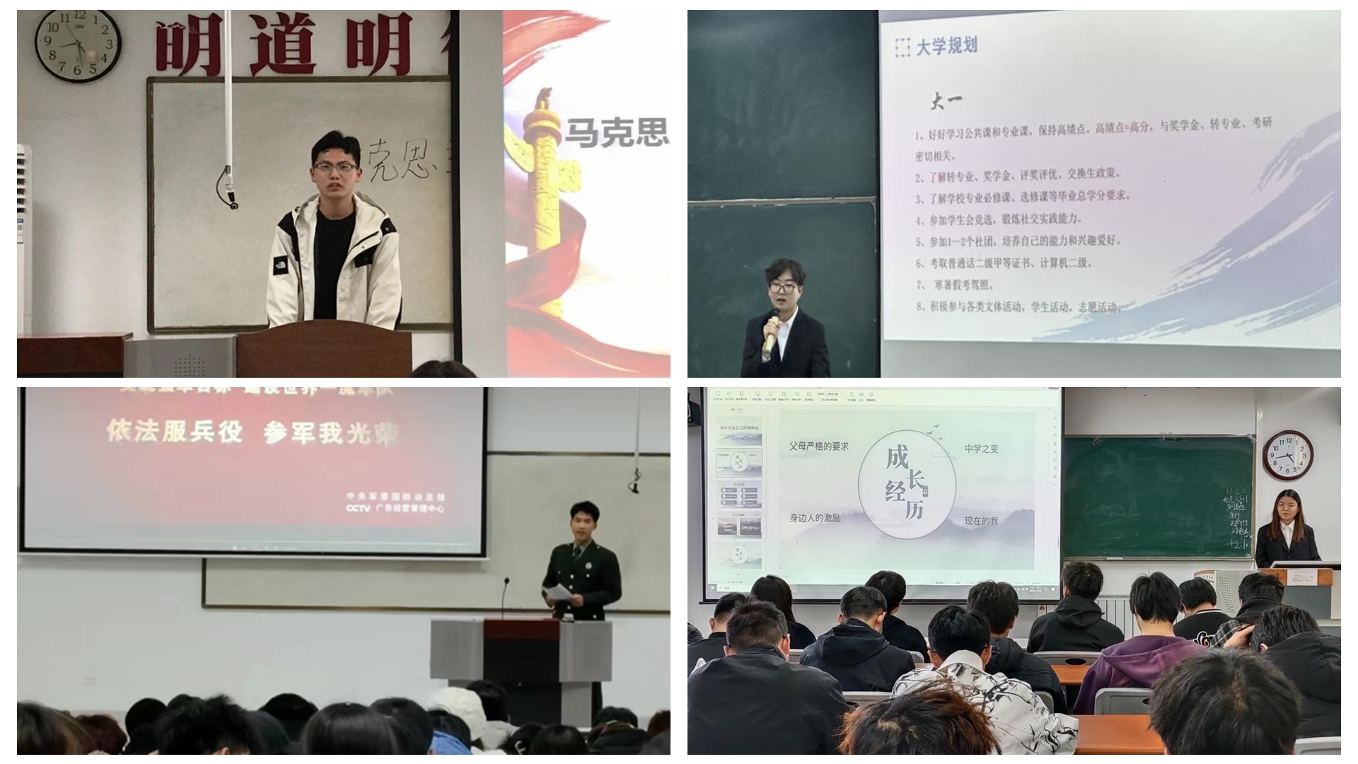 活动开展以来,各学院共选拔94名优秀学生组成宣讲团,主要围绕专业学习、社会实践、志愿服务、自强感恩、就业创业、参军入伍、校园文化等方面开展事迹宣讲。马克思主义学院国家励志奖学金获得者冯佳乐向同学展示了心怀感恩、砥砺追梦的心路历程;人文学院国家奖学金获得者杨运任结合个人学习经历进行了学业规划宣讲,展现了昂扬奋进的进取精神;数计学院退伍学生王立强以“热血报国少年志、青春无悔勇担当”为主题讲述了入伍历程,向同学们传递“奋斗的青春更美丽”的信念;电信学院校级“十佳大学生”杨馨讲述了自己的青春奋斗故事,阐述了志存高远、勤勉笃行的人生态度;化材学院“互联网+”大赛获奖学生胡佳宁分享参与竞赛经历,号召同学踊跃投身创新创业实践;生物学院“优秀志愿者”刘溪溪以个人志愿服务活动为主线,展现了行知精神与青春使命;建工学院全国师范生微课大赛二等奖获得者张芊桦讲述了专业学习引领个人成长的心灵感悟;经管学院2023届毕业生海江结合自身求职经历,开展职业规划宣讲,鼓励同学不断提升综合素养;艺术学院“美育活动优秀践行者”雷芳通过讲述多姿多彩的校园活动,展现了青年学子的青春活力;健康学院杜雯静分享了个人参与“三下乡”实践经历,勉励同学主动深入基层,把美好青春故事写在祖国大地上。宣讲团成员的奋斗历程和青春心声诠释了当代大学生将“小我”融入“大我”,传承先进文化、练就过硬本领,砥砺奋进、接续奋斗的良好精神风貌。
