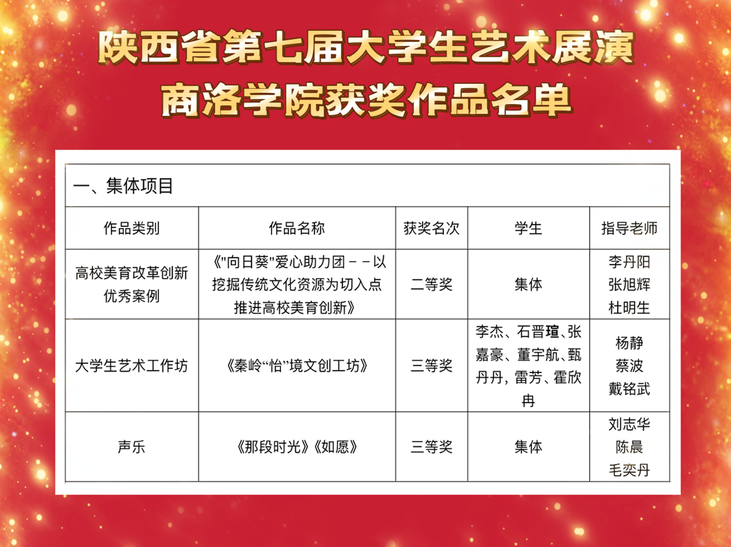 近日,由陕西省教育厅主办的陕西省第七届大学生艺术展演活动评选结果揭晓。best365师生在本届艺术展演活动中取得优异成绩,喜获21个奖项,其中艺术表演类三等奖3项;艺术作品类一等奖1项、二等奖4项、11项;高校美育改革创新优秀案例二等奖1项;大学生艺术实践工作坊奖三等奖1项。