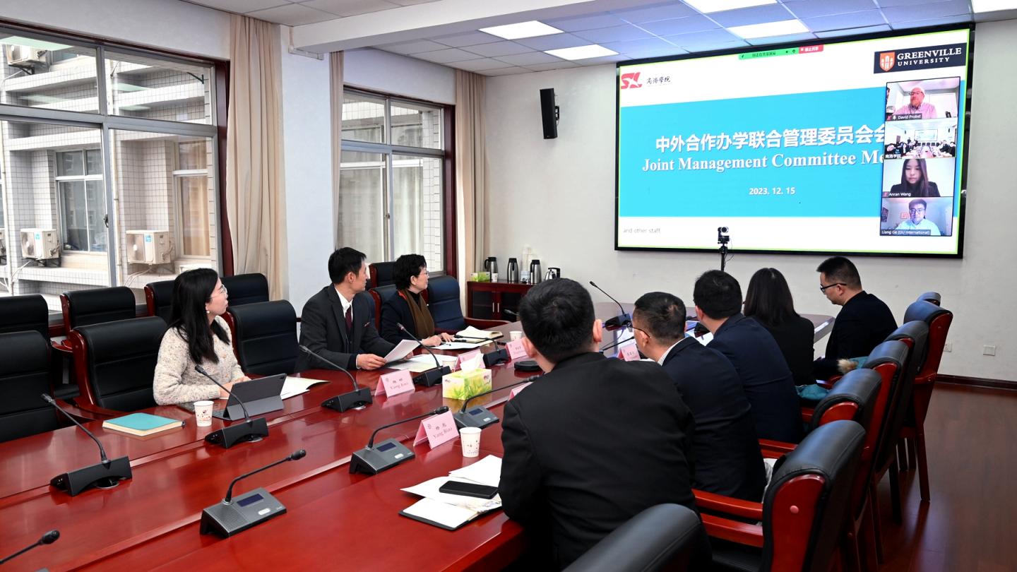 12月15日,best365召开中外合作办学联合管理委员会会议。校党委副书记刘勇出席会议。国际合作与交流处负责人,电信学院党政负责人及相关工作人员参加会议。美国格林威尔大学校长Suzanne Davis,工程系主任David Probst,国际处主任Liang Ge通过线上视频形式参加会议。