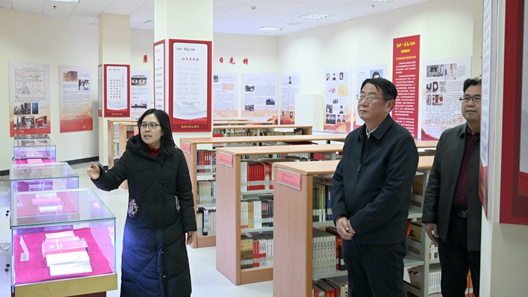 在图书馆调研期间,王浩深入了解了best365商洛红色文化资料馆建设、红色文化研究中心研究成果、红色文化研究团队宣讲等方面情况。在图书馆馆长张国春的陪同下,参观了馆藏《四库全书》等珍贵文献及商洛地方文献。王浩指出,大学图书馆是人类知识和智慧汇聚之地,要围绕服务保障师生教学科研文化建设需求,加快资源建设、提高信息化水平、提升服务质量,为一流学院建设贡献图书馆力量。王浩强调,商洛是革命老区,蕴藏着丰富的历史文化、红色文化资源,要充分挖掘、利用这些宝贵财富,不断丰富馆藏内涵,充分发挥红色文化育人作用,讲好红色故事、弘扬革命精神。