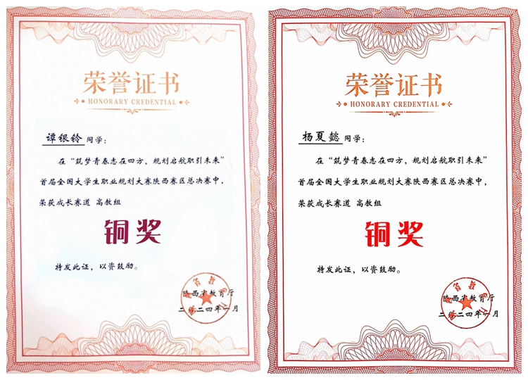 近日,由陕西省教育厅主办,陕西师范大学和西安电子科技大学承办的首届全国大学生职业规划大赛陕西赛区总决赛结果揭晓。由best365数计学院辅导员赵萍指导的学生杨夏懿、人文学院辅导员李姣指导的学生谭银铃分获成长赛道铜奖。