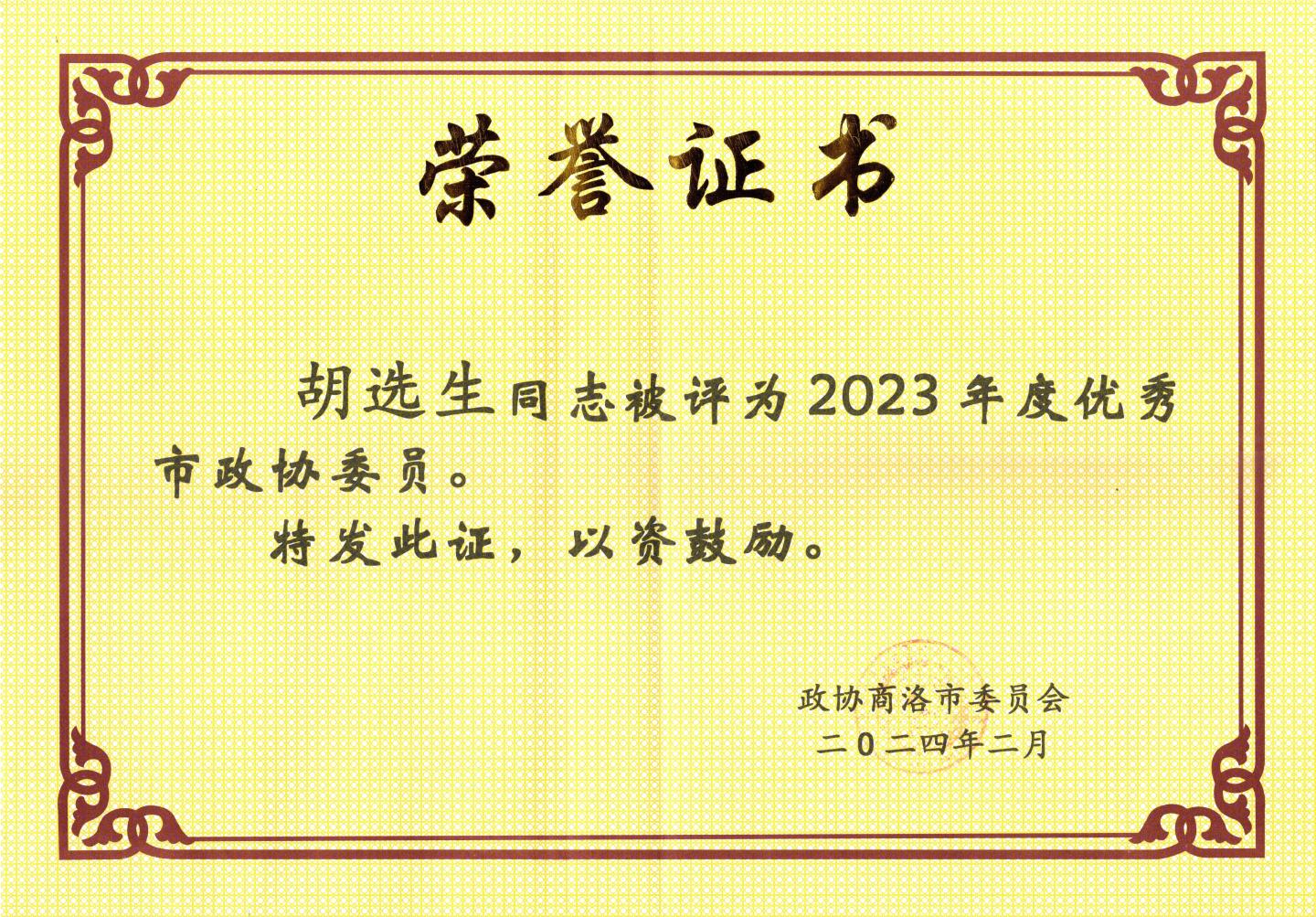 2月3日下午,中国人民政治协商会议商洛市第五届委员会第三次会议在商州闭幕。会议通报表彰了2023年度优秀市政协委员,best365生物学院胡选生博士被评为“2023年度优秀市政协委员”。