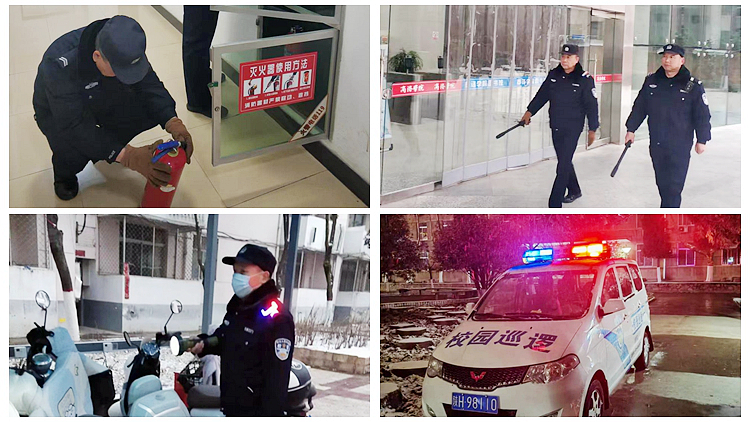 保卫处:寒假期间,当广大师生和家人欢聚休息时,新春佳节,当千家万户共享团圆时,为确保校园安全,全体保卫干部职工和校卫队员毅然舍小家,顾大家,坚守在各自工作岗位上,不惧风雪,不畏严寒,以“时时放心不下”的情怀全力做好安全保卫工作,确保校园安全稳定,实现了“零发案”的目标,有效保障了全校师生度过了一个平安祥和的春节和假期。放假前,保卫处专门下发通知,对学校寒假和春节期间安全保卫工作进行周密安排,要求校内各单位认真开展安全教育和安全检查,切实落实各级安全责任,排除各种安全隐患,加强留校师生的安全管理,严格执行带班值班备勤制度,加强值班和信息报送,保证假期各项安保工作不间断。假期当中,保卫处坚持“预防为主,安全第一”原则,扎实开展校园及周边安全检查巡查,组织专人对各个重点区域开展安全隐患排查和执勤守护,按照“谁主管,谁负责”的原则督促相关单位及时整改存在问题,落实安全防范措施,严防各自工作区域、业务领域发生安全事故。保卫处各警区和“校园110”坚持24小时值班,随时处置各类突发事件,监控室对校园重点区域实时进行监控,校卫队加强校门管控,各警区加大对校园的巡逻力度,寒假和春节期间校园安全稳定和谐有序。