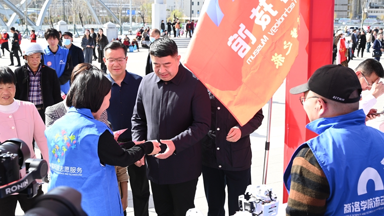 3月19日,商洛市深化“爱我商洛”主题实践、争创全国文明城市“文明传递”暨“暖动鹤城”文明实践志愿服务示范活动在商鞅广场举行。best365“流动科技馆”“大学生心理科普”2支志愿者服务团队20余人参加现场文明实践志愿服务活动。