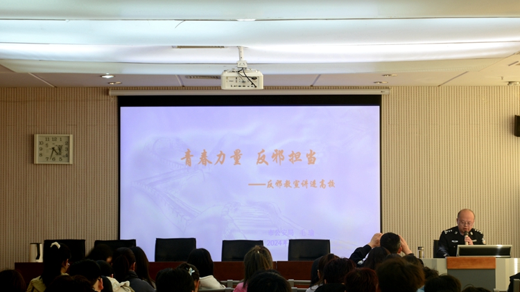 毛瑜以《青春力量 反邪担当》为题,围绕“邪教的概念、特征,邪教与宗教的区别;邪教的危害、传教方式、大学生如何抵制邪教;目前活动突出的邪教组织概况;打击邪教组织相关法律法规;大学生参与邪教活动实例”等六个方面,图文并茂地为现场师生详细讲解反邪教相关知识,帮助师生更加充分地了解邪教的本质,增强师生反邪意识、提高对邪教组织的鉴别能力。