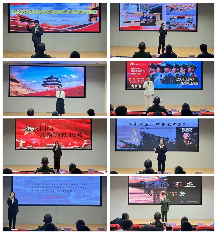 比赛中,经过院级初赛选拔确定的10名参赛选手通过生动的语言和鲜活的事例,从历史事件、家国情怀、时代担当、青年责任等多个角度深刻阐述了对“爱我国防”的理解以及国防事业的重要性。演讲内容回顾了国防建设的历史,也展望了国防事业的未来发展,表达了青年学子对祖国的热爱和对国防事业的执着追求,展现出当代大学生的担当和志向。