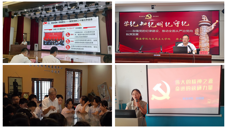 8月13日至16日,马克思主义学院教师刘麦霞、蒋正治、杨增强、武晓婕、路远前往西安海关,分别以《党的二十届三中全会精神解读》《弘扬伟大建党精神 从百年党史中汲取奋进力量 》《加强党的纪律建设、推动全面从严治党向纵深发展》《做一名忠诚务实担当干净的年轻干部》《重读<共产党宣言> 坚定理想信念》为题作了专题报告。自8月20日开始,马克思主义学院武晓婕、王秀绒、彭卫丽等教师相继赴商洛市各中小学校,围绕伟大建党精神、党史学习教育、党纪学习教育三个主题开展系列主题宣讲活动。