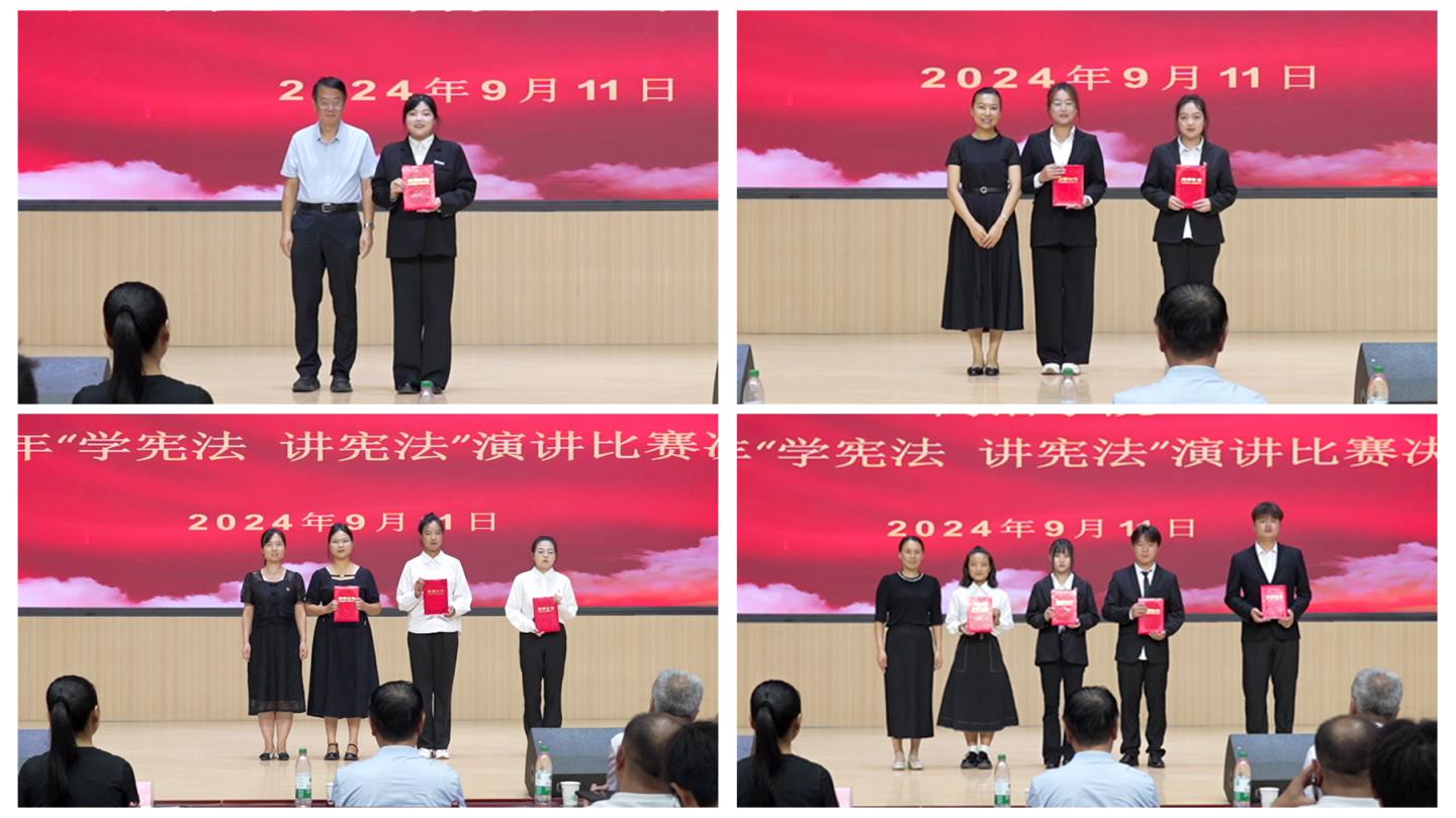 为深入贯彻落实习近平总书记关于加强宪法法治宣传教育的重要指示精神,增强学生法治观念,培养知法、懂法、守法的时代新人,9月11日下午,学校2024年“学宪法 讲宪法”活动主题演讲比赛校级决赛在8号楼大学生活动中心举行。校党委副书记、纪委书记王浩,共青团商洛市委书记饶佳出席活动。