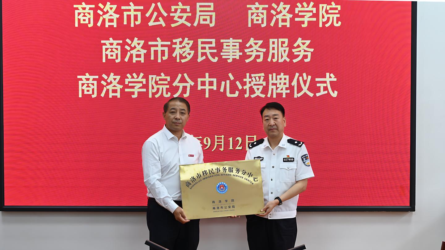 仪式上,柳礼群代表商洛市公安局为商洛市移民事务服务best365中国官方网站分中心授牌,王新军代表学校接牌。