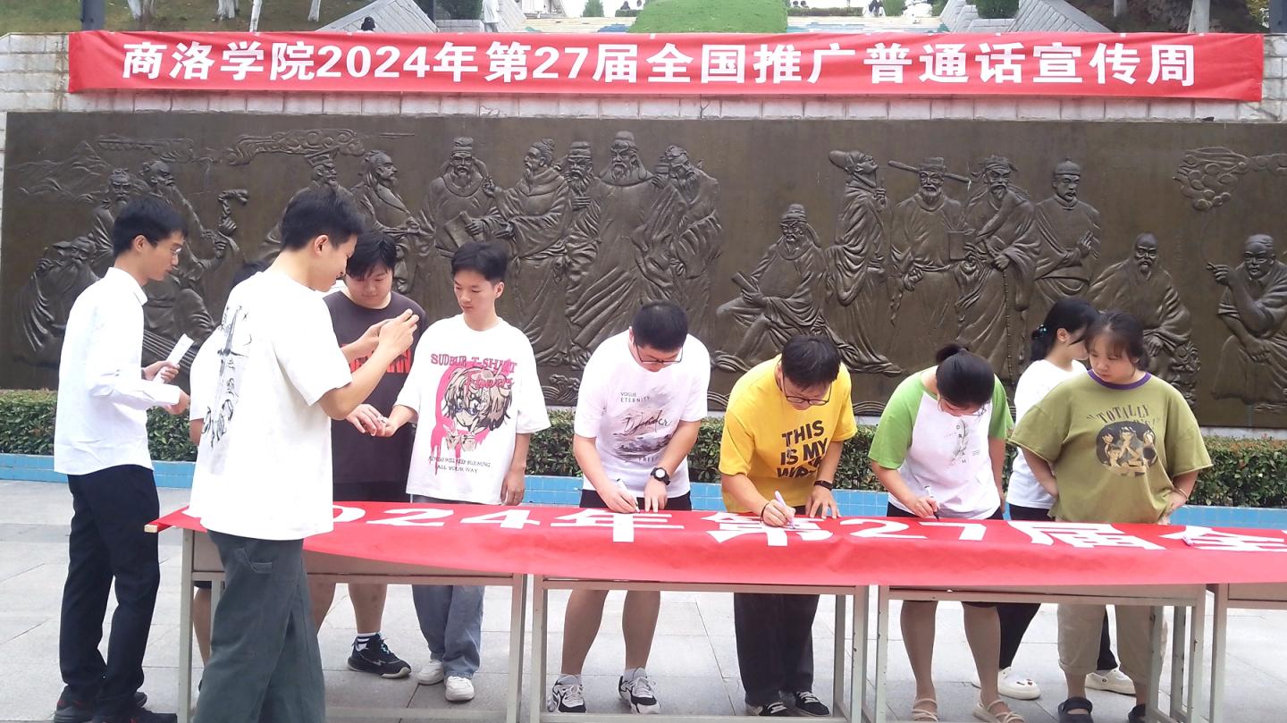 启动仪式结束后,现场师生在推广横幅上签字表达学习国家通用语言文字的决心。