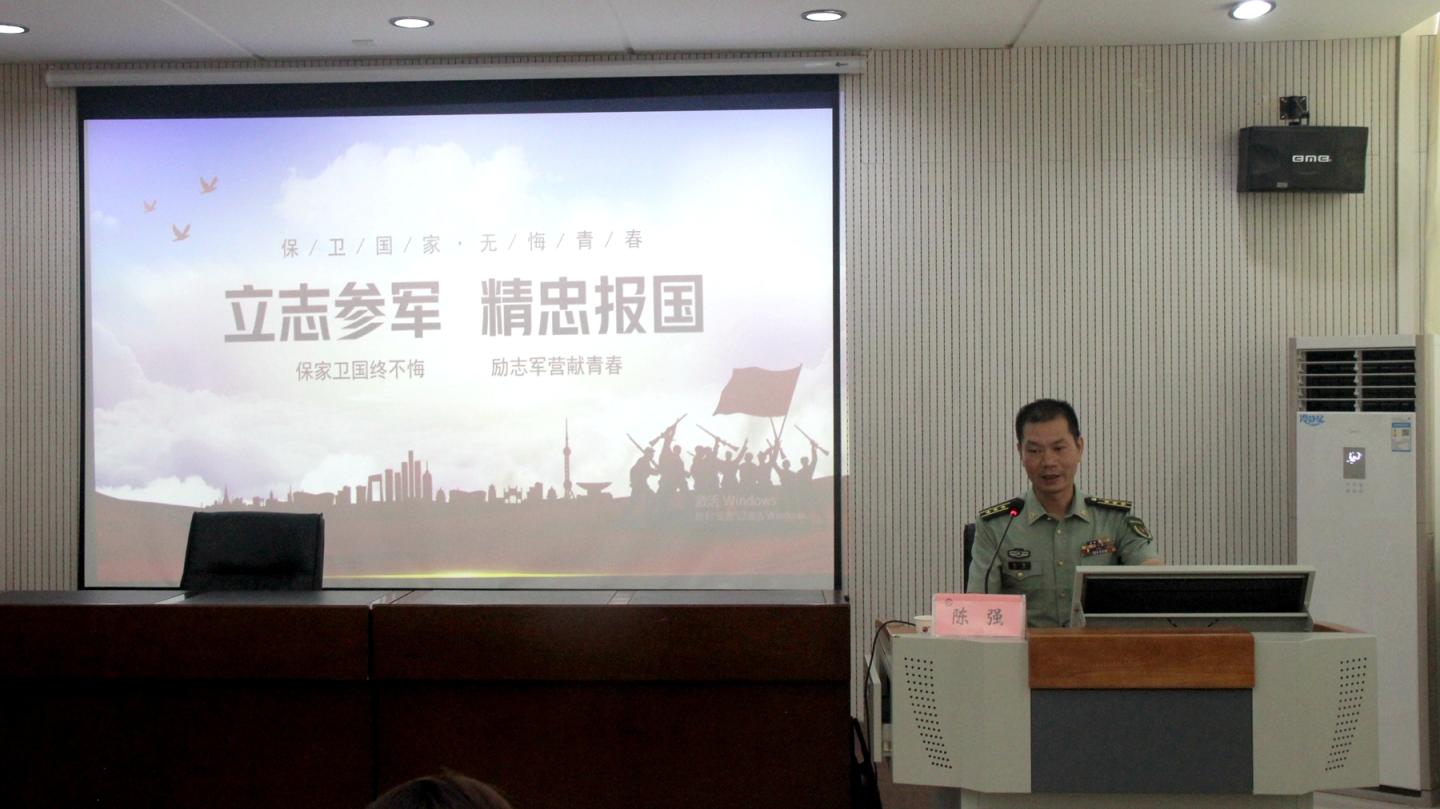 陈强以国家当前安全形势为切入点,围绕“国际国内形势复杂多变”“大国博弈竞争加剧”两个主题进行深刻地阐述,并对大学生应征入伍的条件、流程和相关优惠政策进行了深度讲解。他告诫同学们,富国必须强军、强军必先强兵,建设强大的国防是每个公民应尽的责任与义务,更是当代大学生的使命与光荣。陈强希望同学们树立主动作为、勇于担当的责任意识,自觉把个人成长与祖国命运结合起来,做好职业生涯规划,用青春热血助力强军梦想实现。