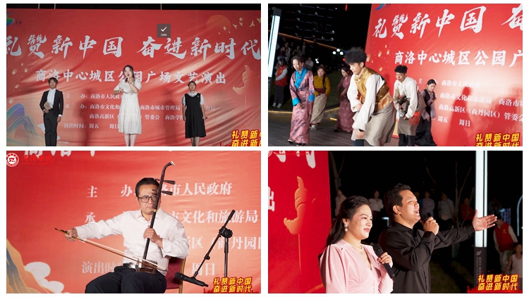 27日当晚,校团委在两河口公园举办“礼赞新中国 奋进新时代”商洛中心城区公园广场文艺演出国庆专场。学院师生表演了歌曲《向往》、二胡独奏《万马奔腾》、戏曲串烧《穆桂英挂帅》、器乐合奏《我和我的祖国》等精彩节目,助力商洛市打造特色文化品牌、丰富群众文化生活,唱响爱国主义的时代主旋律。