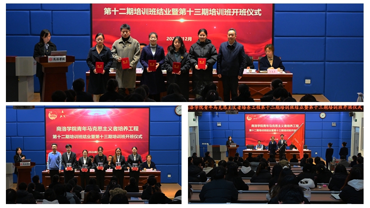 组织部部长张向东为第十三期“青马工程”培训班指导教师颁发聘书,宣传部部长王霄飞为学员代表赠送学习书籍《习近平与大学生朋友们》,学工部部长李彦广宣读《关于“青年马克思主义者培养工程”第十三期培训班开班的通知》,马克思主义学院党总支书记刘麦霞为培训班授旗。