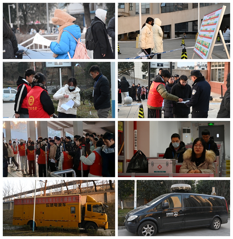学校高度重视研考工作,校长权雅宁、副校长刘宝盈总体指挥调度,各职能部门分工协作,二级学院积极配合,相关负责人联合值班,共同护航平安研考。考务组、试题组、保密组、保卫组、后勤保障组等考点服务工作小组各司其职、密切配合,按照工作流程认真做好考场视频监控调试、考务用品准备、考场布置、试题保密、治安保卫、水电暖设备监控维护等各项准备工作,并提前对400余名考务、安保、后勤保障人员和志愿者开展了业务培训,确保考试顺利进行。工作人员和志愿者认真组织、热心服务,积极引导考生接受智能安检,有序进入考场,助力考生安心考试。