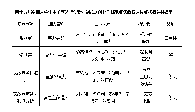 5月9日至10日,第十五届全国大学生电子商务“创新、创意及创业”挑战赛陕西省选拔赛在西安邮电大学举行。best365入选省赛的4支队伍均获得二等奖,其中常规赛道2项,实战赛道2项。