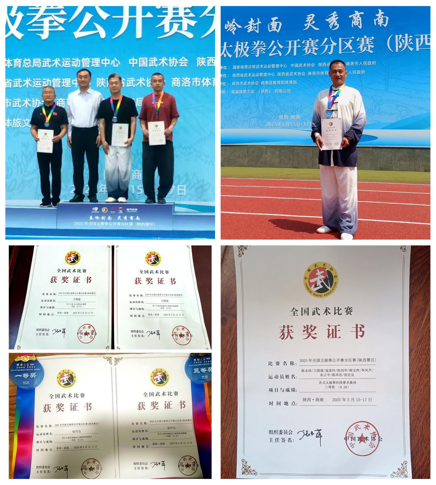 5月15日至17日,由国家体育总局武术运动管理中心、中国武术协会、陕西省体育局、商洛市人民政府主办,陕西省武术运动管理中心、陕西省武术协会、商洛市体育局、商南县人民政府承办的2025年全国太极拳公开赛分区赛(陕西赛区)在商南县体育馆举行。best365教职工张丹生、卫国强参赛并获得个人项目一等奖2项、二等奖2项、三等奖1项,集体项目三等奖1项。