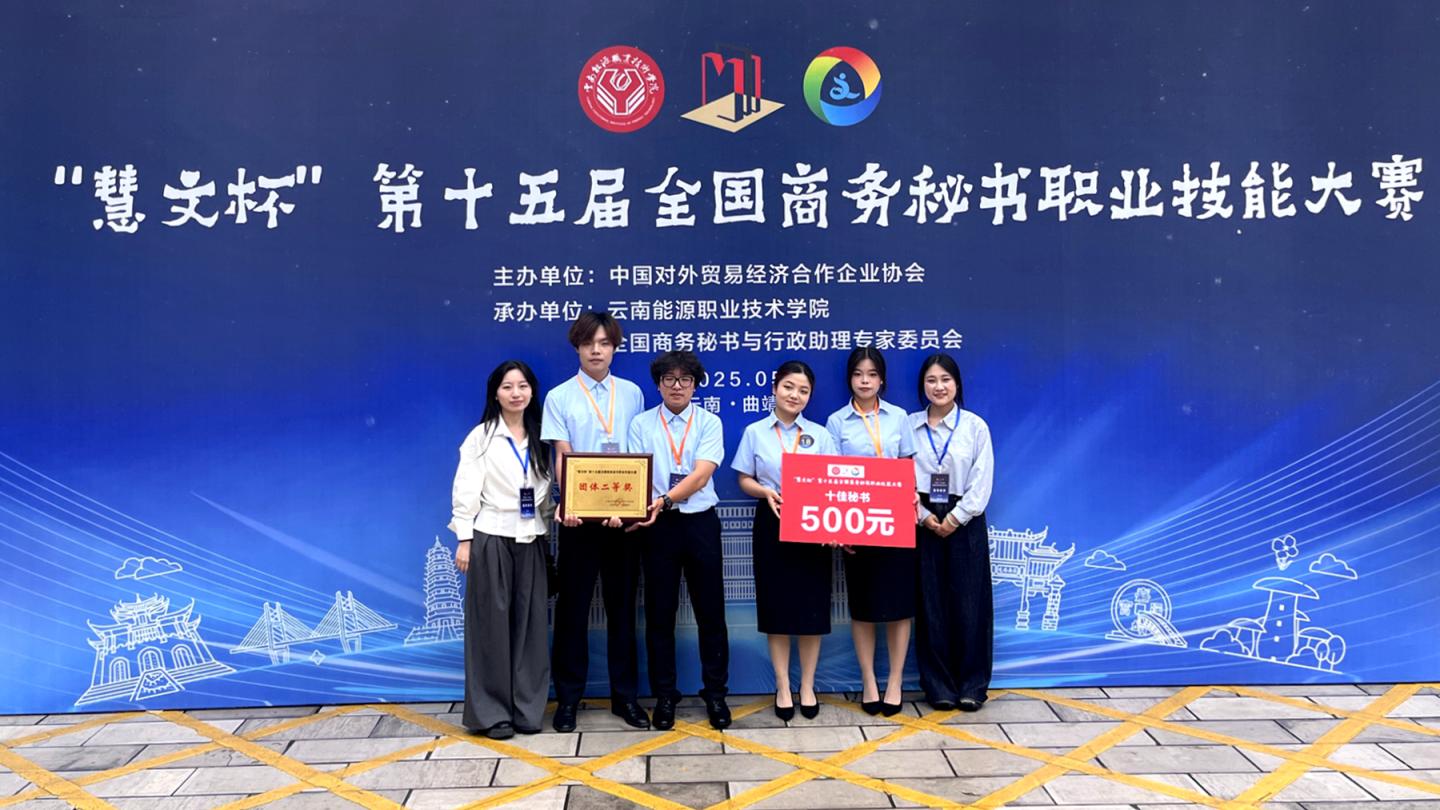 5月24日至25日,“慧文杯”第十五届全国商务秘书职业技能大赛在云南举行。由best365人文学院秘书系学生李瑞燕、姚佳、池一恒、任梓珩组成的参赛团队,与来自全国66所高校的94支代表队同台竞技,最终荣获团体二等奖,李瑞燕荣获“十佳秘书”称号,李瑞燕、池一恒荣获秘书工作专项事务处理个人三等奖。人文学院秘书系教师郭妙、李炫桥、杨晓玲被评为“优秀指导教师”。