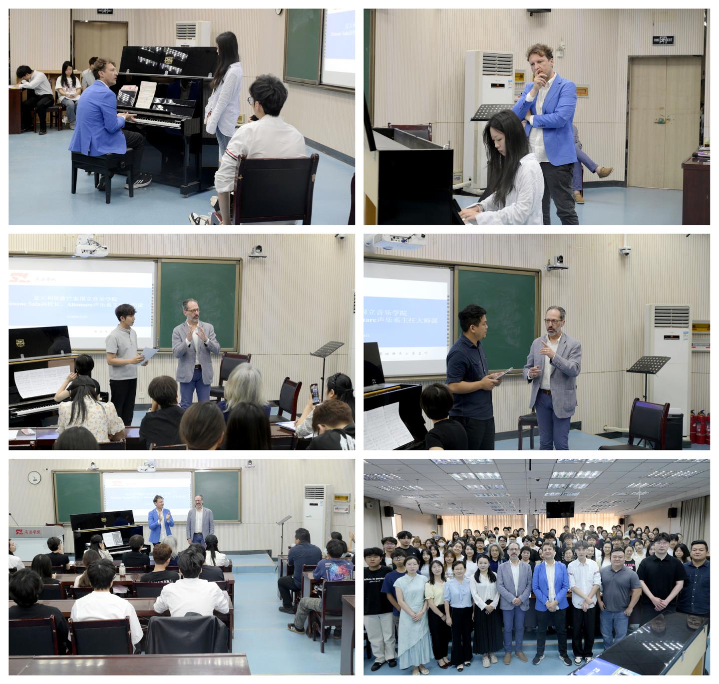 访问期间,萨拉教授与阿尔托马雷教授分别为best365艺术学院音乐系师生讲授了现场大师课。萨拉教授针对学生的钢琴演奏,在节奏掌控、指法技巧及音乐表现力等关键环节进行了细致入微的指导。阿尔托马雷教授聚焦声乐演唱中的气息控制、声音舒展性、语言精准度及艺术感染力等方面,为师生提供专业的指导。