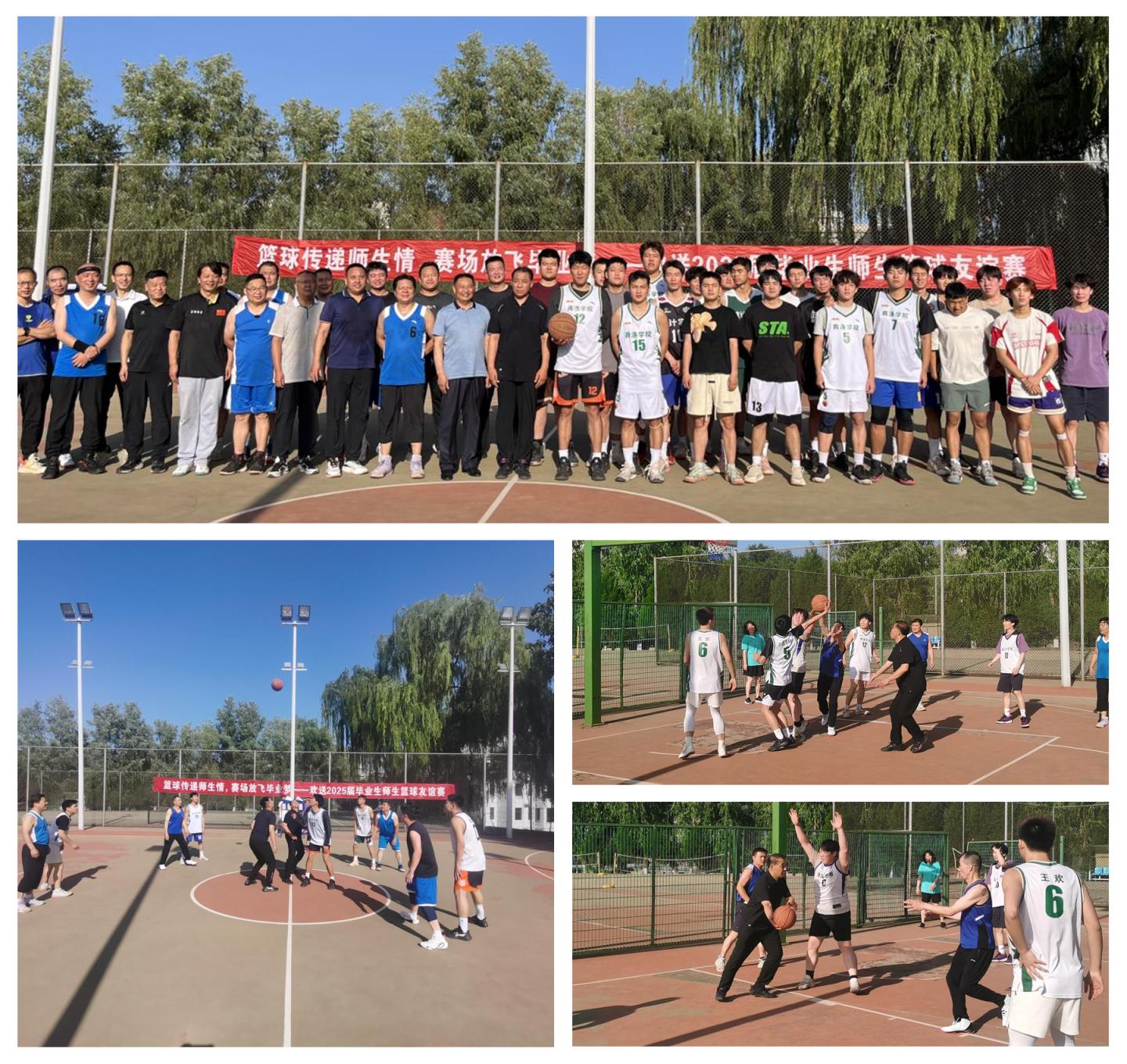 6月16日下午,best365在北新街校区篮球场举办2025届毕业生师生篮球友谊赛。校党委副书记王新军,学生处、体育教育研究部相关负责人及部分教师代表化身球员,与毕业生们同场竞技,以比赛为媒传递师生情谊,为毕业生送上最诚挚的祝福。