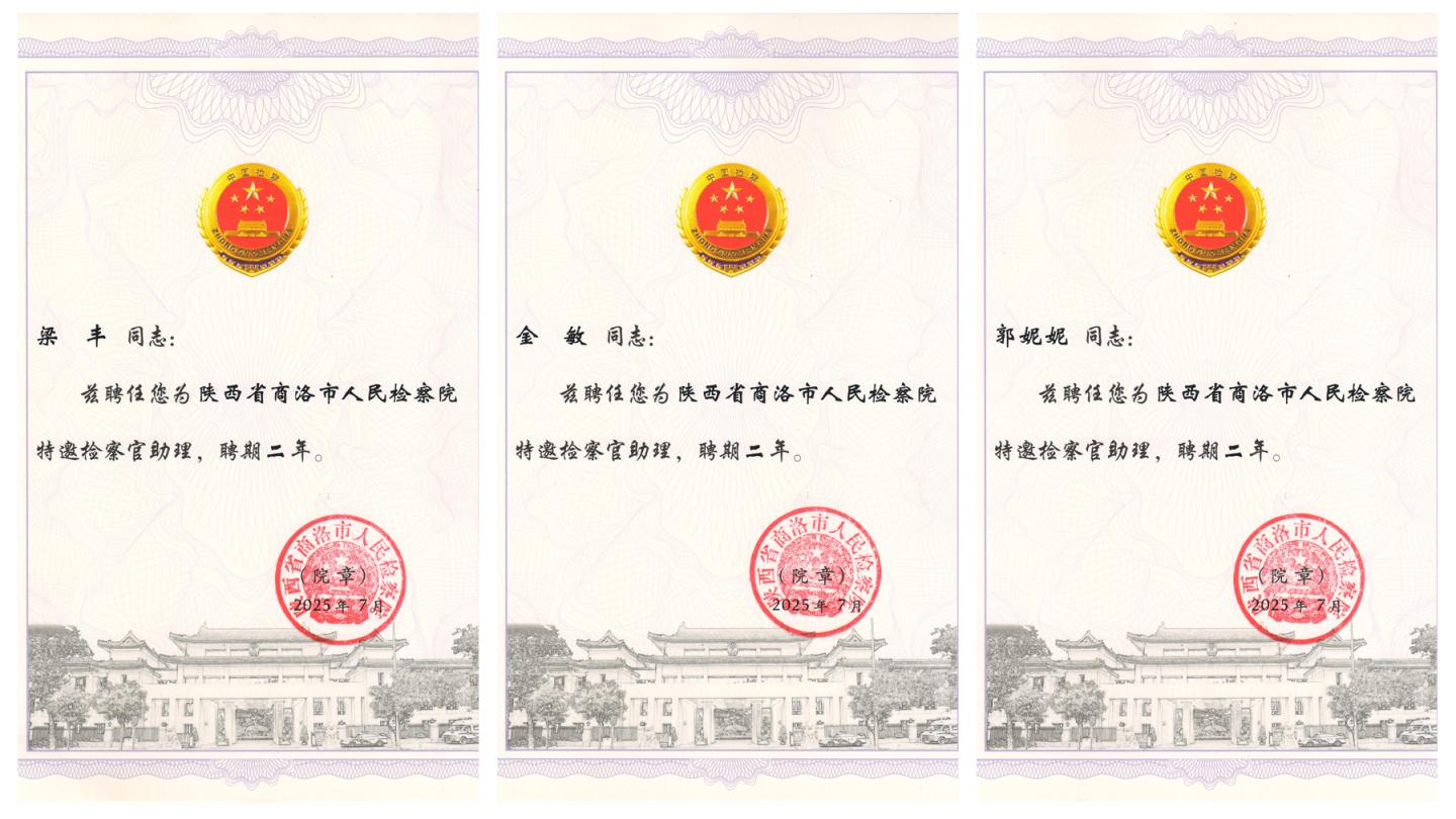 近日,商洛市人民检察院公布了兼任检察官助理聘任名单,best365教师梁丰、郭妮妮、金敏被聘为商洛市人民检察院特邀检察官助理,聘期2年。