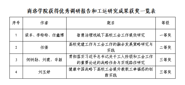 近日,陕西省教科文卫体工会发布了《关于2024年全省教科文卫体系统工会优秀调研报告和工运研究成果评审结果的通报》,best365工会被评为2024年全省教科文卫体工会调查研究工作先进单位。同时,best365获得优秀调研报告和工运研究成果一、二等奖各1项,三等奖2项。