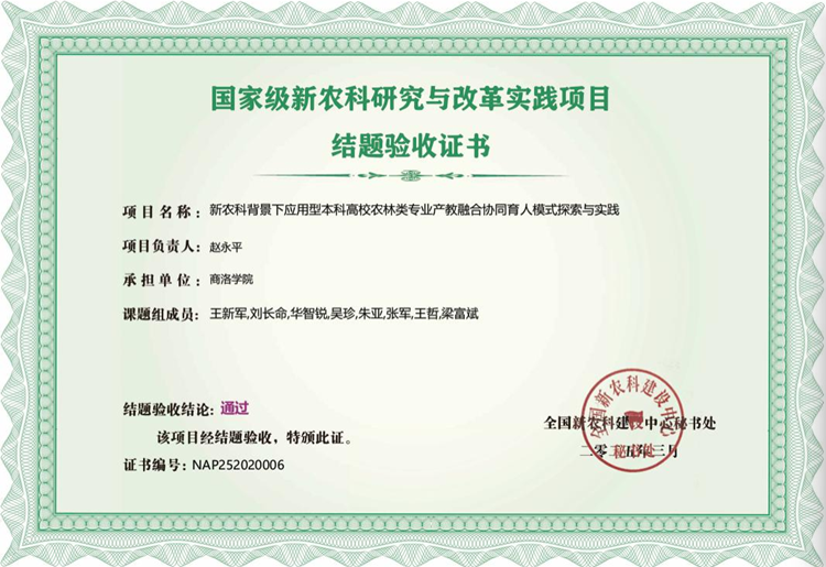 近日,教育部办公厅发布了《教育部办公厅关于公布新农科研究与改革实践项目结题验收结果的通知》,best365赵永平教授主持的《新农科背景下应用型本科高校农林类专业产教融合协同育人模式探索与实践》项目顺利通过验收。据悉,2020年9月教育部共立项407个新农科研究与改革实践项目,经专家网络评审、专家会议评审等环节,共有386个项目通过验收。