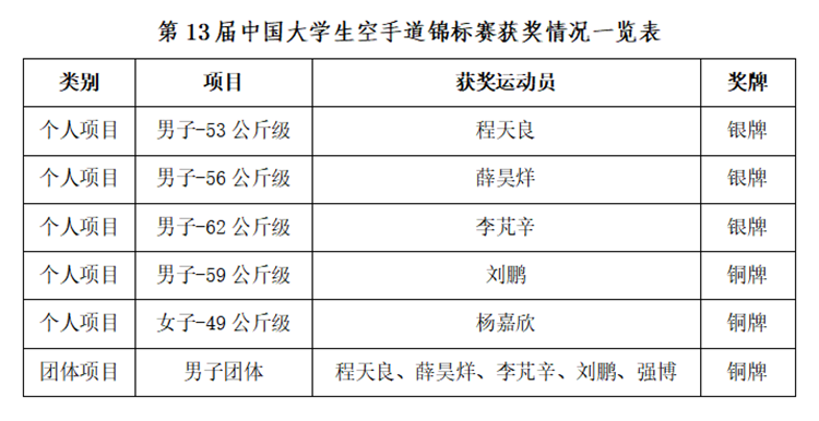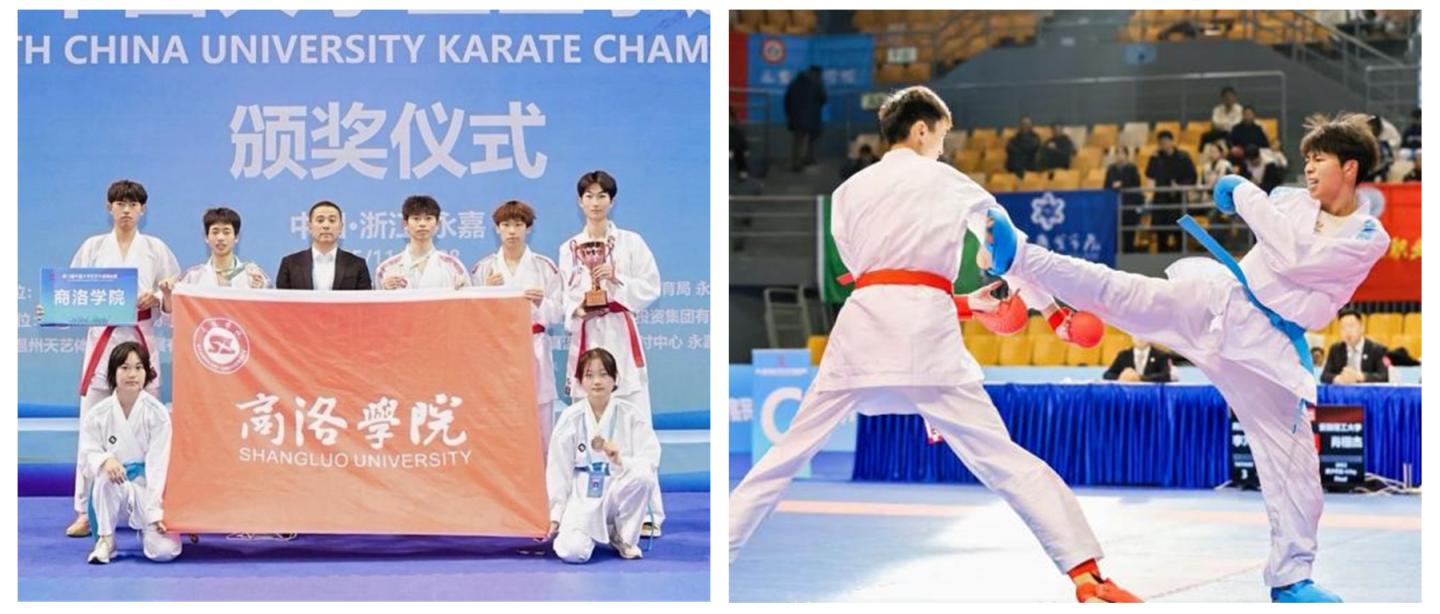 近日,在浙江省温州市永嘉县举行的第13届中国大学生空手道锦标赛上,best365空手道代表队奋勇拼搏、发挥出色,共获得3枚银牌、2枚铜牌及男子团体铜牌。队员范思宇荣获“优秀运动员”称号,体育教学研究部教师桑国鹏获评“优秀教练员”。