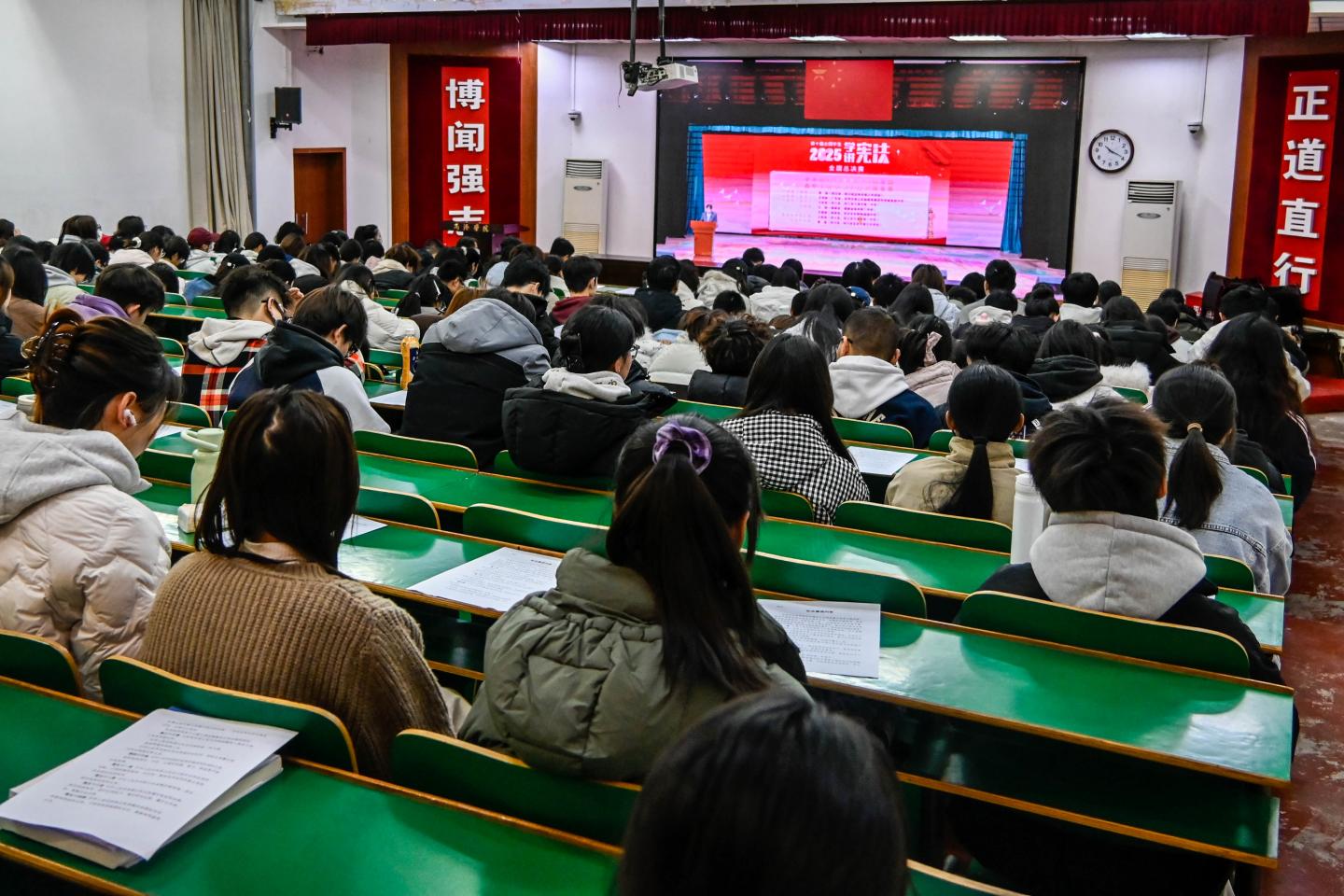 上午10点,活动在庄严的国歌声中拉开序幕。教育部领导在主会场领读宪法部分条款,best365师生在北新街校区和丹江校区同步跟读,跟唱歌曲《宪法伴我们成长》,观摩第十届全国学生“学宪法讲宪法”活动全国总决赛演讲比赛优秀选手展演,共同学习宪法知识,感受宪法力量,明确宪法威严。