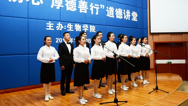12月11日晚,生物学院在图书馆二楼报告厅举办了以“不忘初心 厚德善行”为主题的道德讲堂。宣传部、校团委、教务处相关人员,生物学院全体教师、学生代表及各学院团员代表参加了活动。