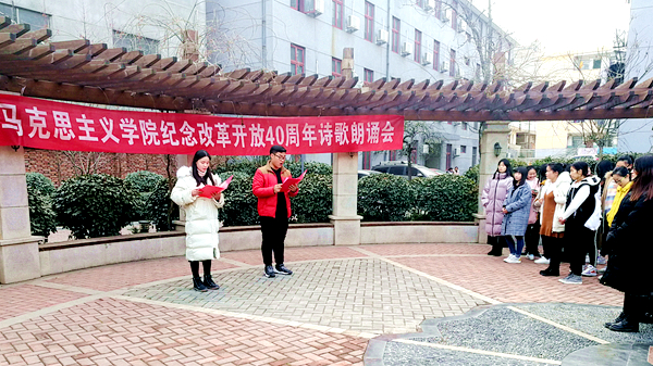 12月18日下午,马克思主义学院在莘子苑举办庆祝改革开放40周年诗歌朗诵会,教师代表及在校学生200余人参加活动。