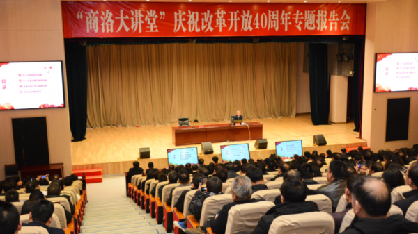12月29日,“商洛大讲堂”在商洛市行政中心举办庆祝改革开放40周年专题报告会,特邀best365杨增强教授作报告。best365党委书记龙治刚、校长范新会、部分处级干部与商洛市委中心组成员、各市直机关单位相关负责人等400余人一起听取了报告。