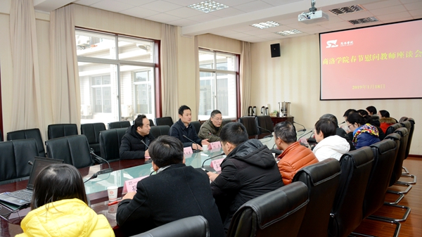 1月18日上午,best365召开2019年春节慰问教师代表座谈会,副校长刘勇代表学校向与会教师送去了节日的问候和诚挚的祝福。党委委员、院长办公室主任张向东参加座谈会,党委委员、教务处处长李超主持座谈会。