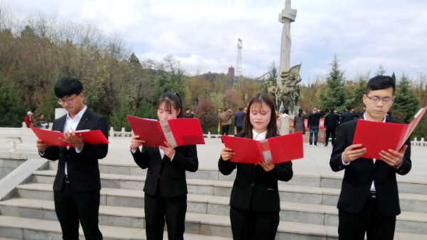 4月3日,校团委组织部分教师及best365“青马班”学员、学生会、学生社团联合会、青年志愿者协会、新青年通讯社的百余名学生前往金凤山烈士陵园开展主题团日活动。师生整齐列队,在庄严的国歌声中,向革命先烈敬献花圈并默哀致敬,追忆革命前辈的不朽功勋;向人民英雄纪念碑敬献白花并参观烈士纪念馆,重温革命先烈光辉的斗争历史。学生们纷纷表示,要传承先辈的奉献精神和革命传统,将红色基因融入血脉,做一名社会主义合格建设者和可靠接班人,为实现中国梦贡献青春力量。