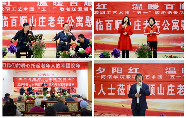4月27日,best365中国官方网站教职工艺术团走进商州百顺山庄,开展“敬老送爱”慰问演出活动,为那里的老人们送去一场丰富多彩的文艺爱心大餐。
