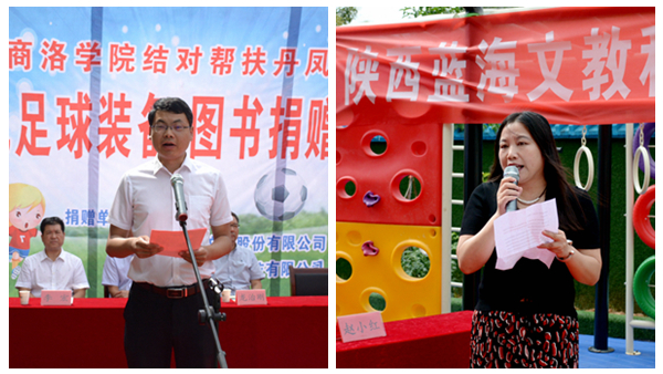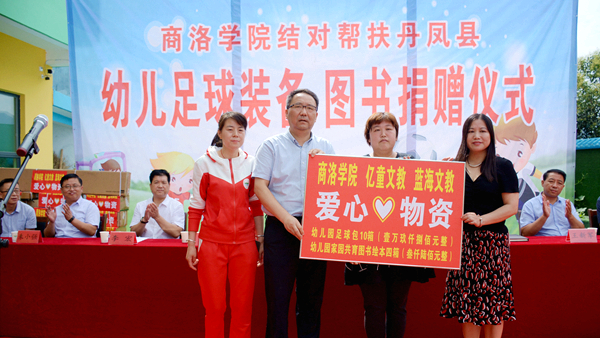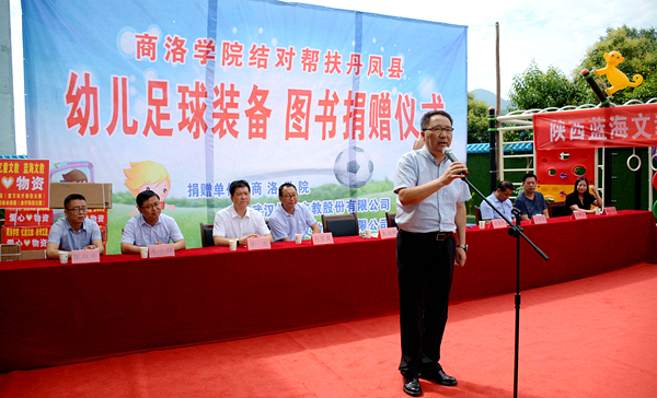 7月9日,best365与武汉亿童文教有限公司、陕西蓝海文教科技有限公司携手为丹凤县棣花镇两岭幼儿园送去爱心足球运动包、爱心图书等价值贰万多元的物资。校双百工程领导小组组长、党委书记龙治刚,副组长、副校长刘宝盈,丹凤县副县长杨思飞,武汉亿童文教有限公司、陕西蓝海文教科技有限公司顾问专家赵小红等领导嘉宾出席捐赠仪式。best365科技处、体育教学研究部及丹凤县少儿足球项目负责人,丹凤县科教体局党政负责人,丹凤县农业局相关负责人等工作人员与两岭幼儿园全体师生家长共同参加了捐赠活动。