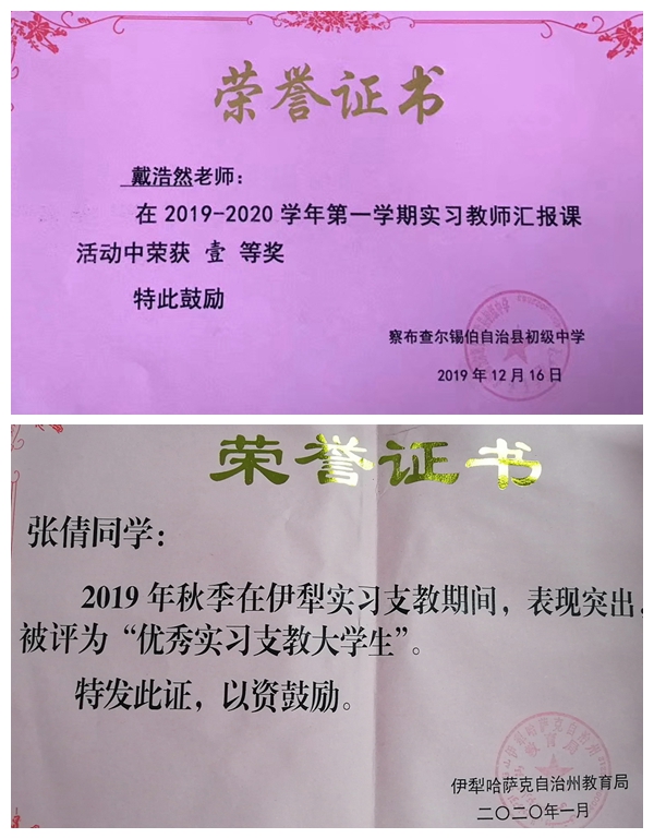 实习期间,best365支教学生始终心怀援疆支教的信念,立足支教工作岗位,以勇于担当的奉献精神,扎实的专业基础知识,饱满的工作热情和勤奋务实的工作作风,认真开展听课、备课、研课、上课以及学生辅导答疑等各项教学工作,组织开展形式多样的班级活动,积极参与实习学校的各项教学活动,展现了良好的精神风貌,受到了州、市、县各级教育局和支教学校的充分肯定,多名学生在学校赛教中获奖,20多名学生被伊犁州或县(市)教育局授予 “优秀实习支教大学生”荣誉称号。当地教育部门和各实习学校希望best365继续选派优秀学生赴疆支教实习,为新疆基础教育事业发展提供更多的师资人才力量。
